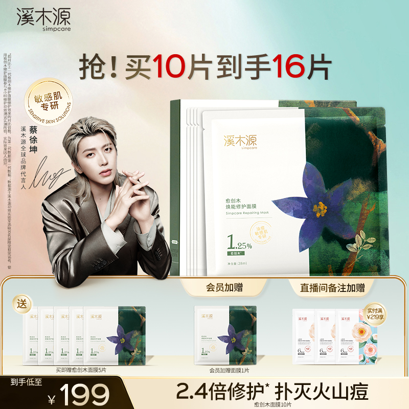 溪木源愈创木面膜祛痘淡化痘印修护油痘肌保湿贴片面膜女熬夜救急