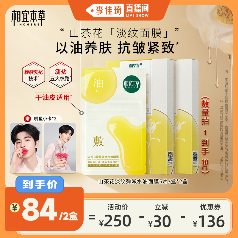 【李佳琦直播间】相宜本草山茶花油敷膜淡纹紧致水油面膜以油养肤