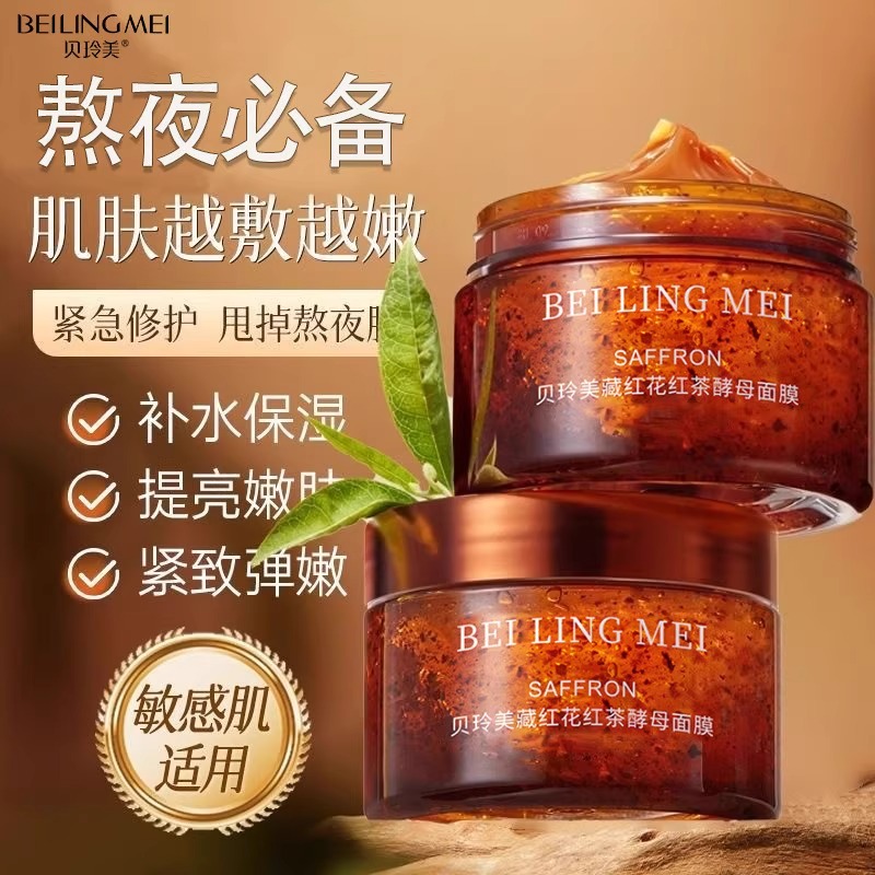 藏红花红茶涂抹面膜补水修护熬夜去黄提亮改善暗沉睡眠女官方正品