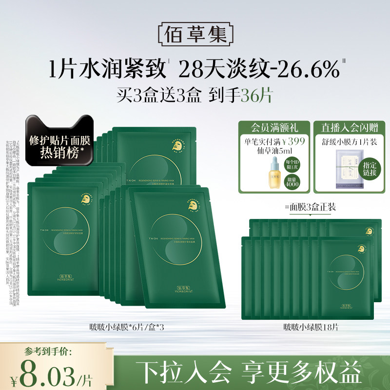 佰草集太极小绿膜修护紧致淡纹抗皱补水面膜保湿提亮面膜官方正品