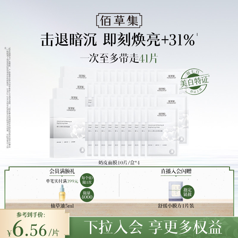 【特证2.0】佰草集新七白奶皮补水保湿提亮面膜美白面膜祛斑减黄
