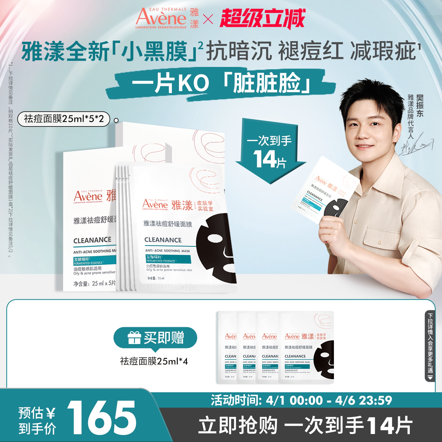 【樊振东同款】雅漾祛痘舒缓面膜小黑膜控油修护褪痘红清洁毛孔