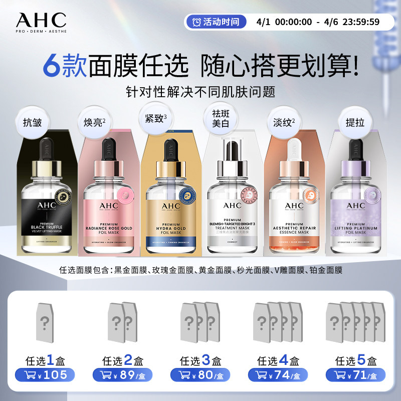 【加入购物车下单】AHC官方旗舰店黄金面膜玫瑰金面膜补水保湿