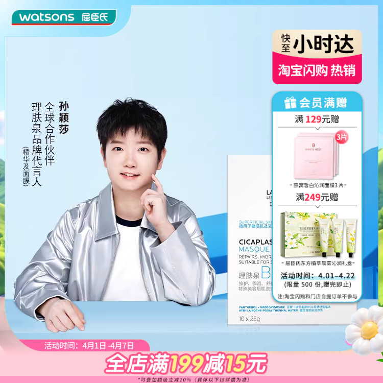 屈臣氏法国理肤泉B5多效保湿修护面膜保湿水润10片滋润温和不刺激