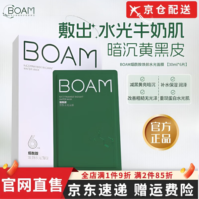 BOAM【直售】BOAM烟酰胺面膜补水熬夜救急水光透亮改善粗糙黄黑皮 【优惠装】烟酰胺*2盒12片