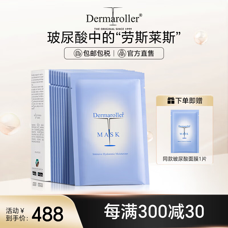 Dermaroller德国进口院线玻尿酸精华面膜补水保湿修护紧致熬夜救急 10片/盒