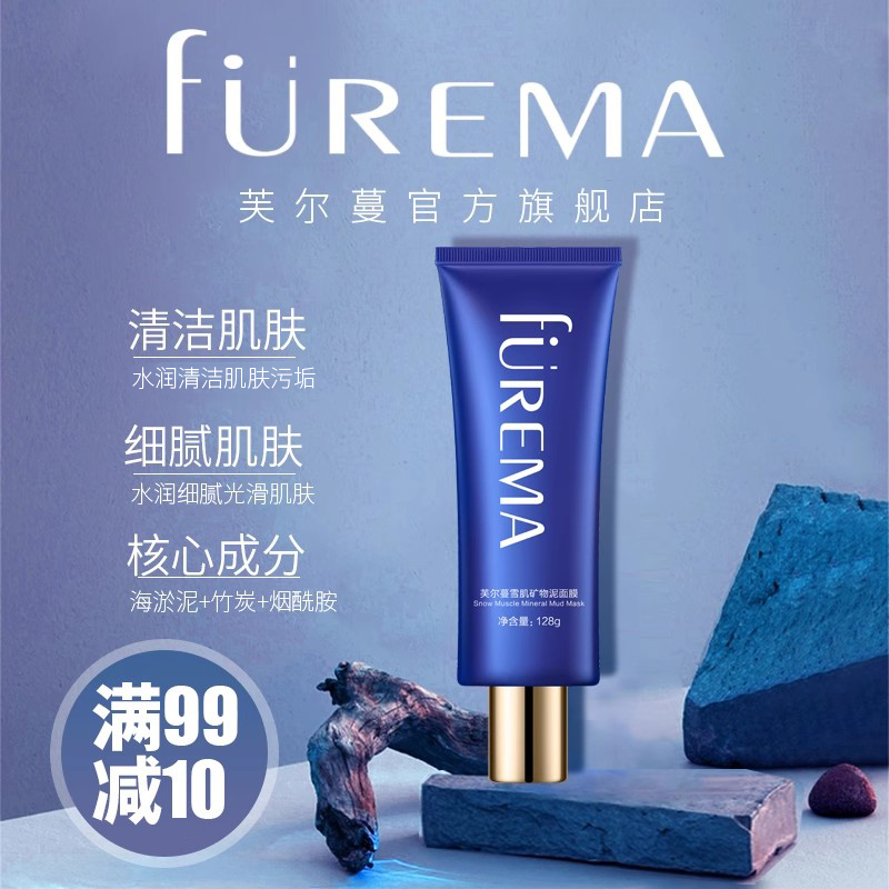 芙尔蔓雪肌矿物泥面膜128g海泥竹炭烟酰胺水润光洁净肤面膜泥