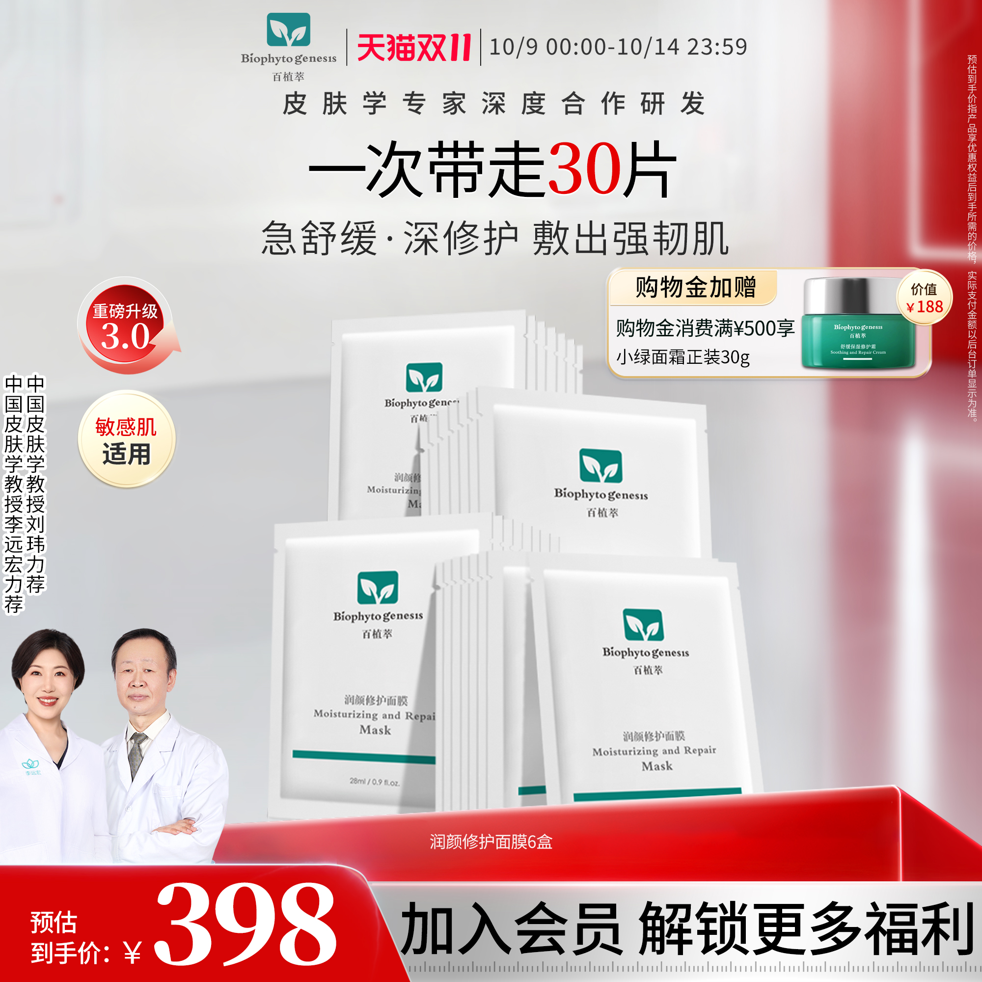 【双11抢先购】百植萃润颜修护面膜舒缓修护肌肤保湿补水面膜