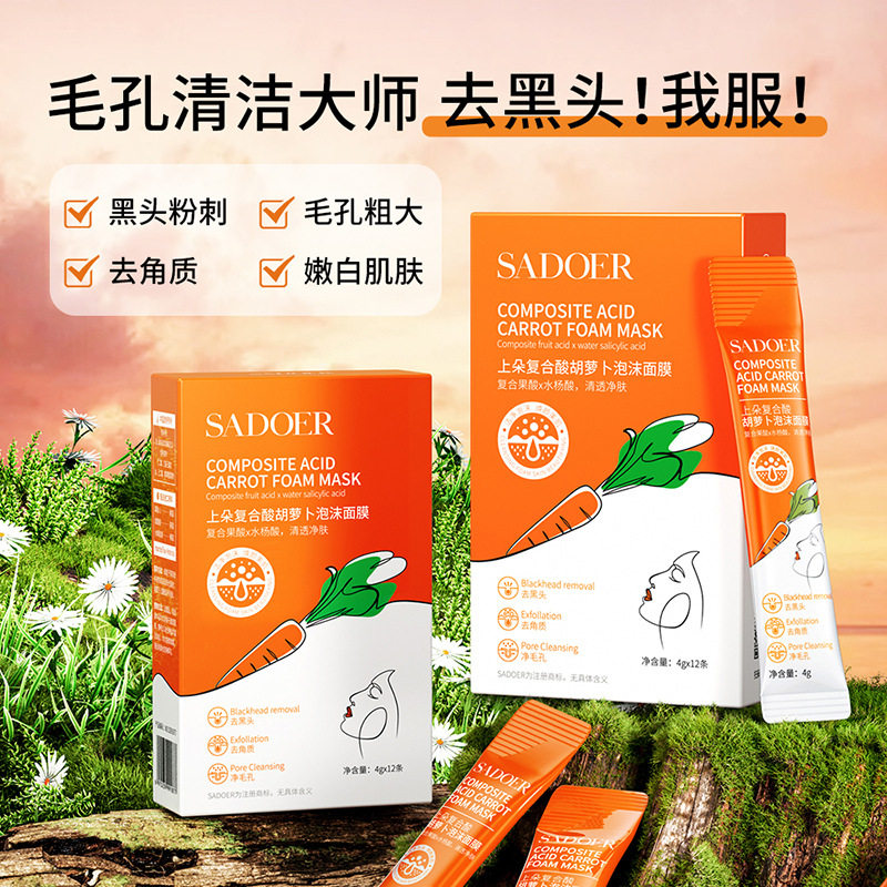 上朵复合酸胡萝卜泡沫面膜细腻清洁去毛孔黑头嫩滑透靓发泡便携装