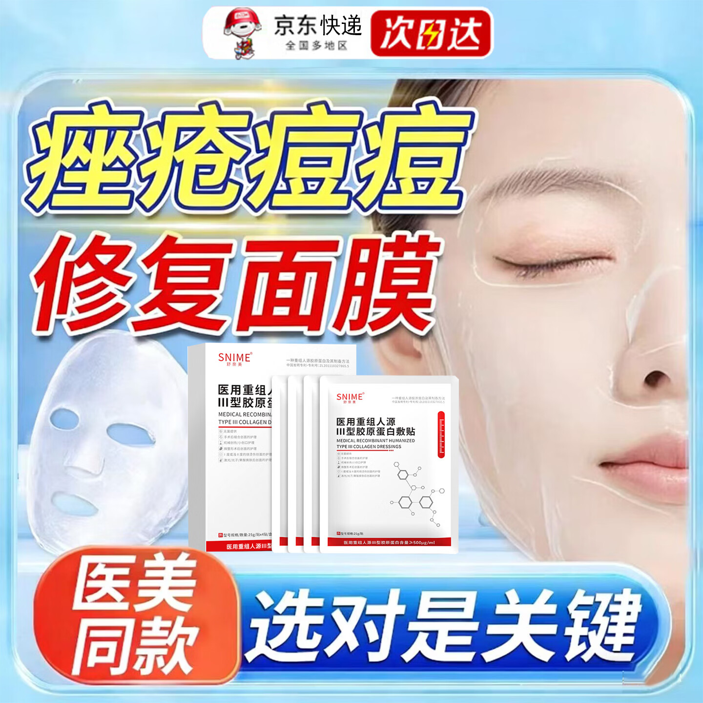重组胶原蛋白面膜修护敏感肌补水保湿淡化医美术后果酸换肤敷料贴 一盒5片装【干敏急救 术后修护】