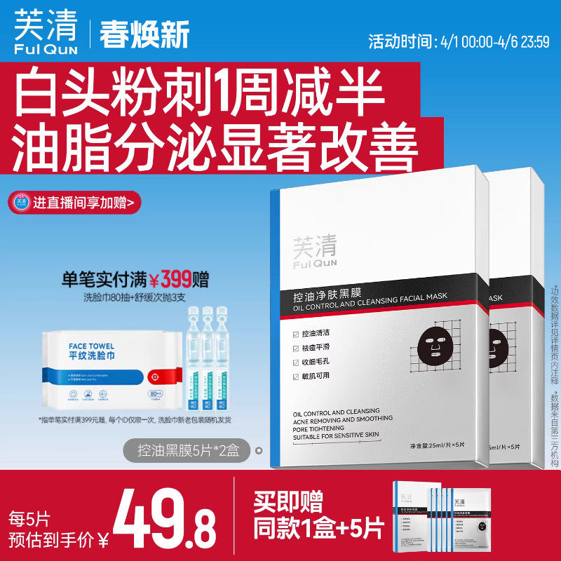 芙清控油黑膜改善闭口粉刺清洁祛痘温和保湿面膜敏感肌