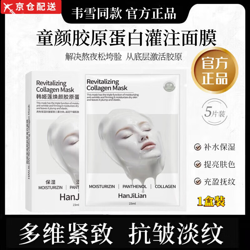 韩姬莲【韦雪同款】韩姬莲焕颜胶原蛋白面膜抗皱紧致保湿嫩肤王正品旗舰 1盒5片装【焕颜胶原蛋白面膜】 【正品保障】