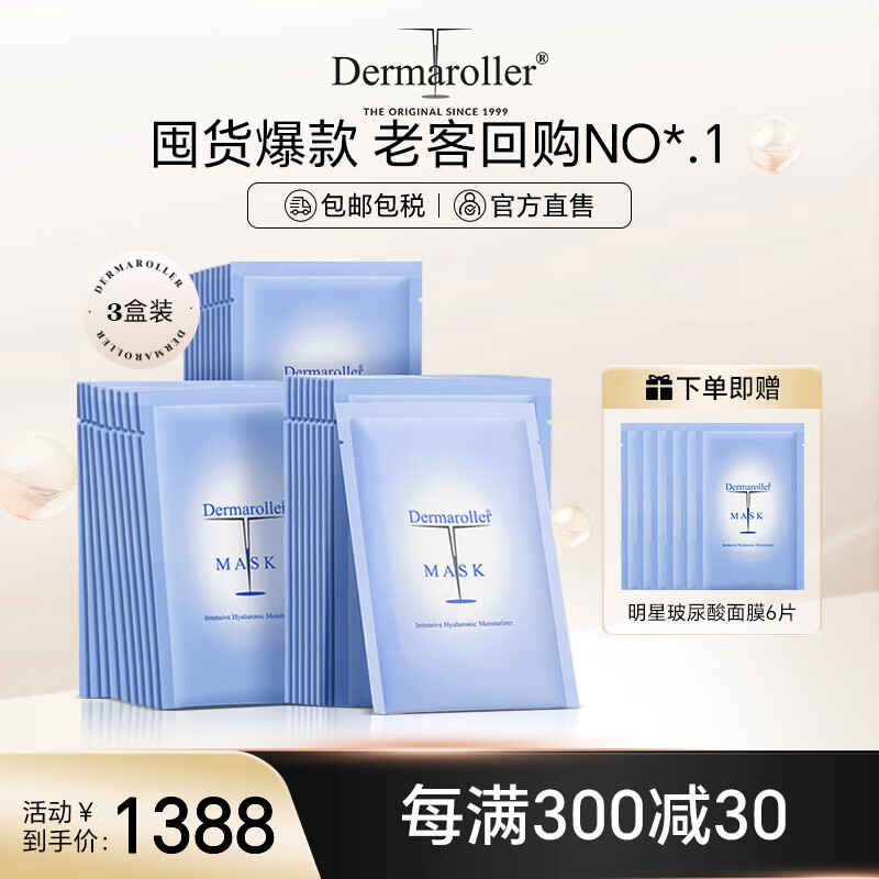 Dermaroller德国进口院线玻尿酸精华面膜补水保湿修护晒后急救舒缓维稳 10片*3盒装