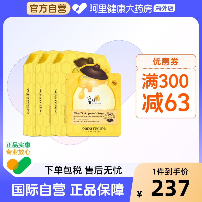【百亿补贴】韩国paparecipe黄春雨蜂蜜倍润面膜补水保湿舒缓30片