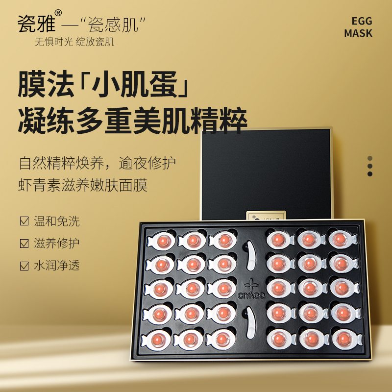 瓷雅鸡蛋面膜免洗虾青素抗皱紧致淡纹熬夜嫩肤鱼子酱精华补水养护