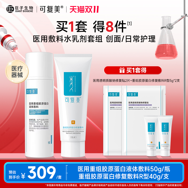 可复美重组胶原蛋白医用水乳套装创面修复敷料械号水乳液非面膜