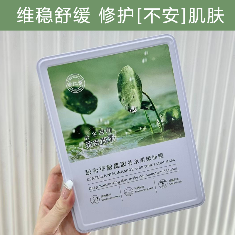 珍仁堂积雪草面膜补水保湿缓解肌肤敏感舒缓修护泛红熬夜提亮肤色