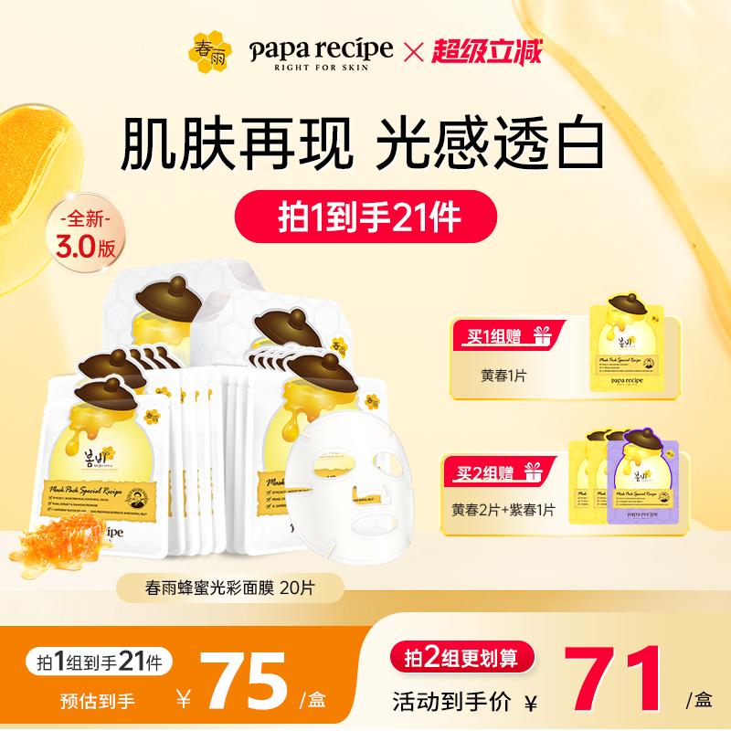 【新升级】韩国春雨光彩面膜滋养提亮白20片改善暗沉女官方正品