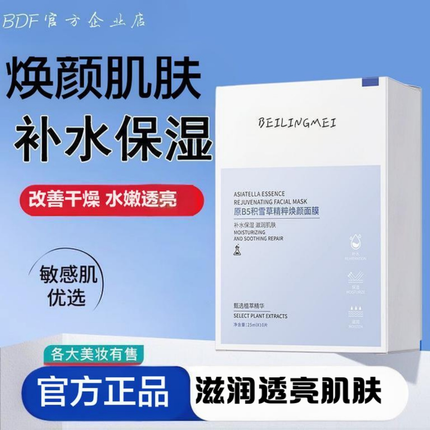 B5积雪草焕颜面膜提亮肤色改善暗沉修护熬夜保湿舒缓修护敏感肌