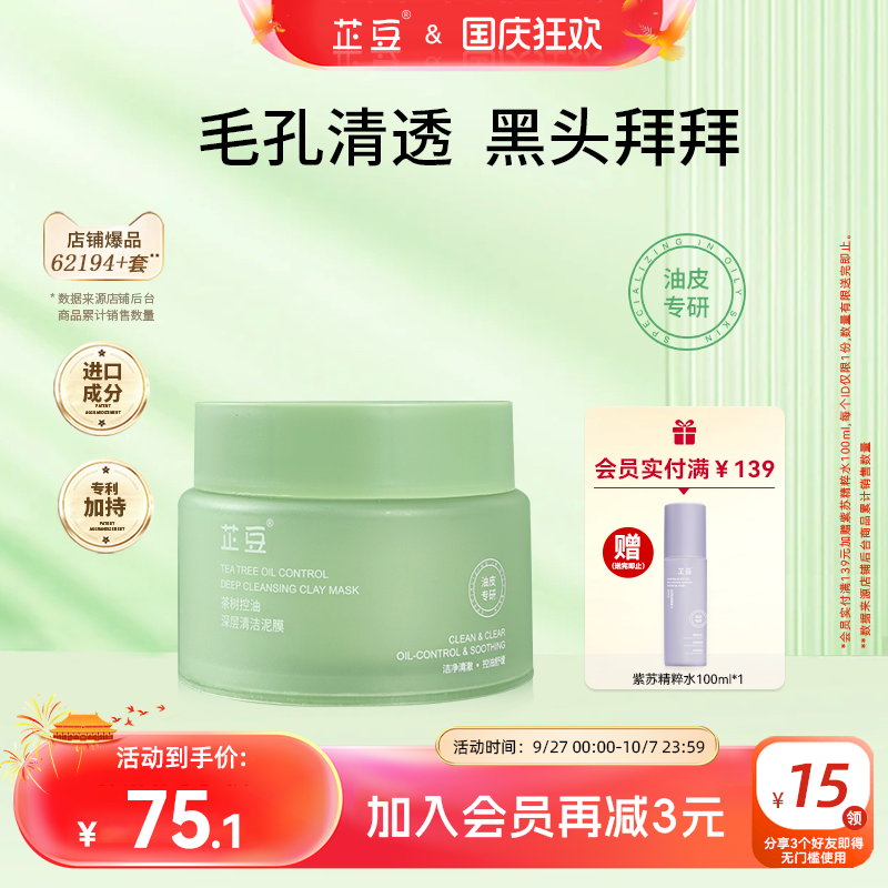 芷豆泥膜茶树控油深层清洁收毛孔改善黑白头舒缓补水涂抹面膜正品