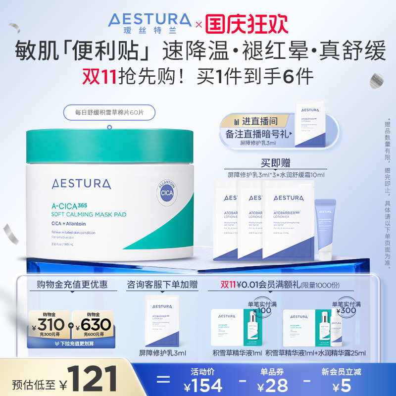 AESTURA/瑷丝特兰每日舒缓积雪草棉片保湿滋润舒缓泛红补水面膜