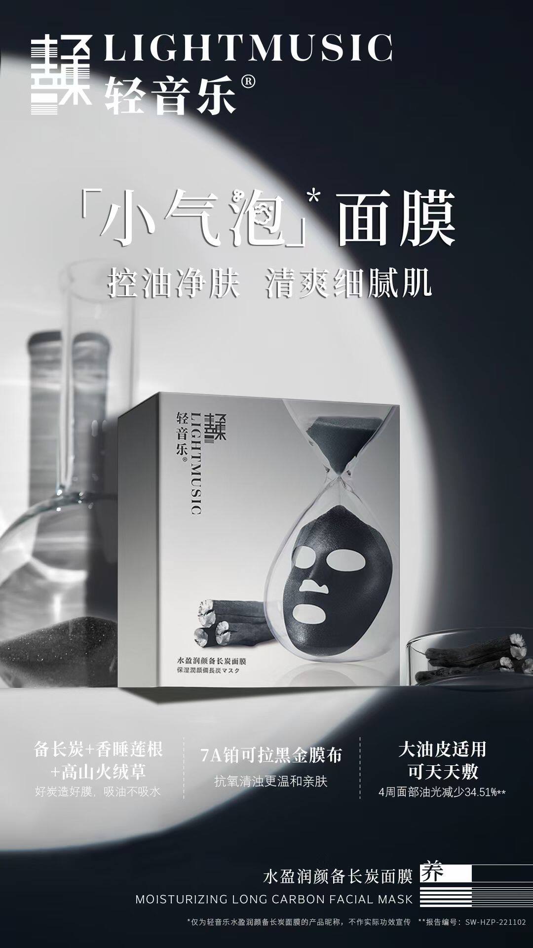 轻音乐净颜补水备长炭面膜深层清洁亮肤收缩毛孔20片特惠装黑膜