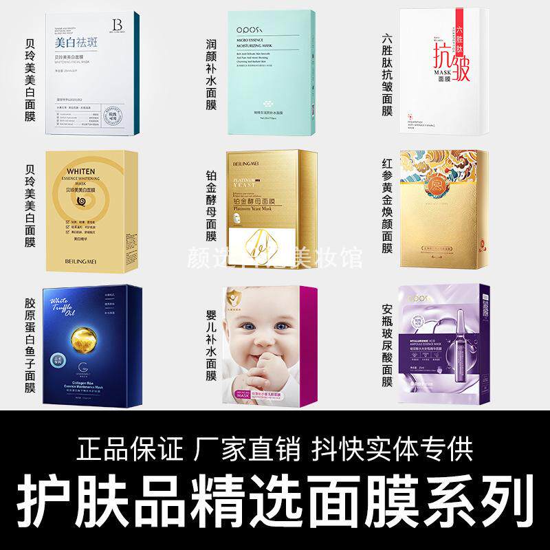 贝玲美美白面膜玻尿酸补水复活草提亮系列护肤品化妆品