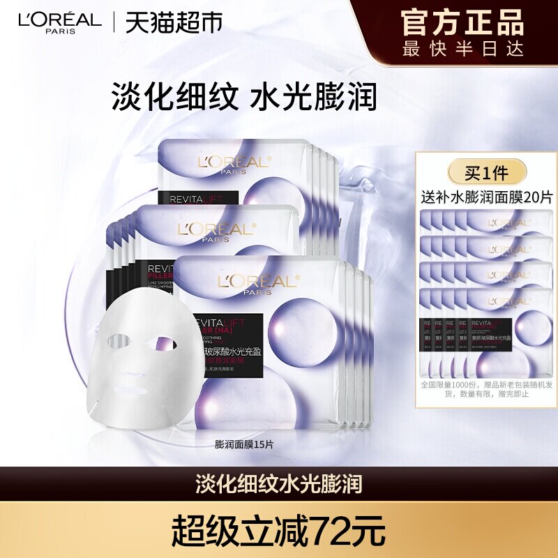 欧莱雅复颜玻尿酸淡纹膨润精华面膜补水保湿淡化细纹舒缓护肤品