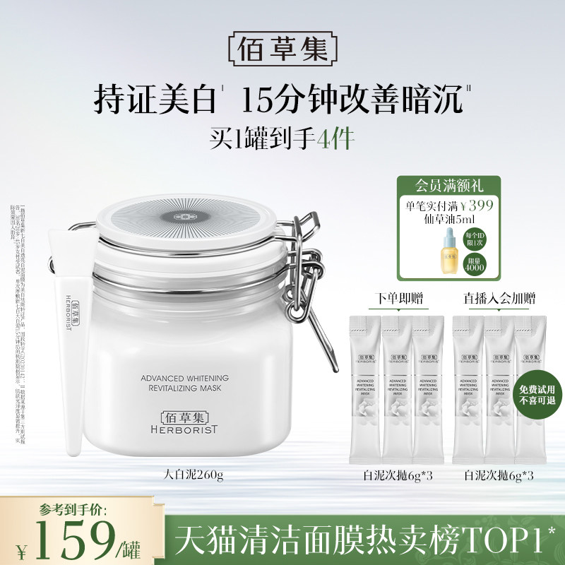 【3.0版】佰草集新七白大白泥美白特证祛斑去黄涂抹面膜清洁泥膜