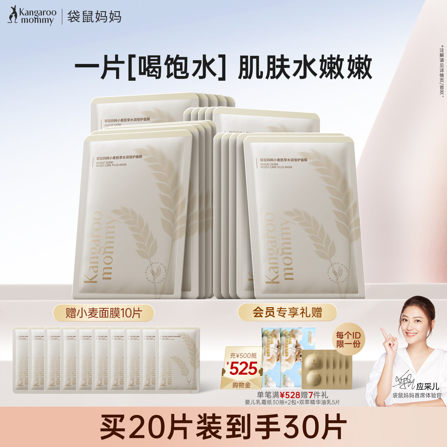 袋鼠妈妈小麦面膜补水女滋润面部护肤精华面部护理护肤品可用保湿