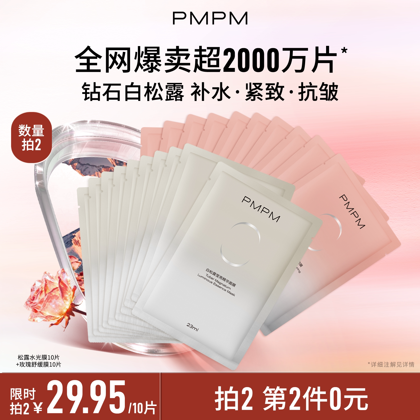 【立即抢购】PMPM玫瑰白松露贴片面膜女补水清透紧致保湿嫩肤舒缓