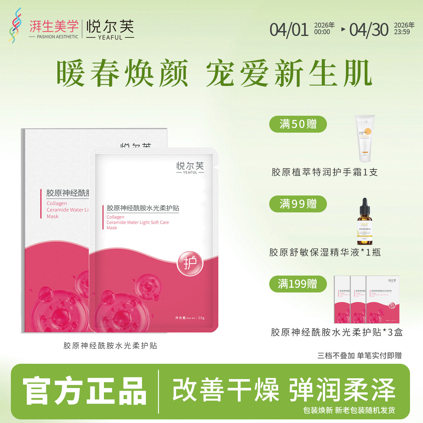 悦尔芙胶原蛋白神经酰胺维稳屏障舒护春敏水光面膜补水保湿贴