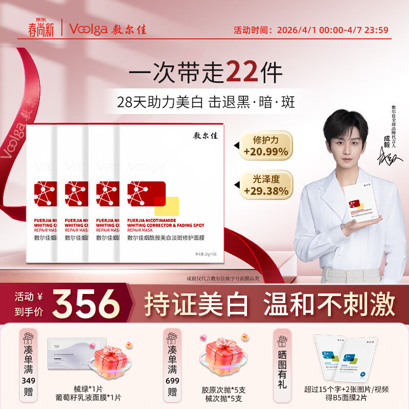 敷尔佳烟酰胺美白淡斑修护面膜4盒 美白褪黄暗沉提亮肤色温和保湿
