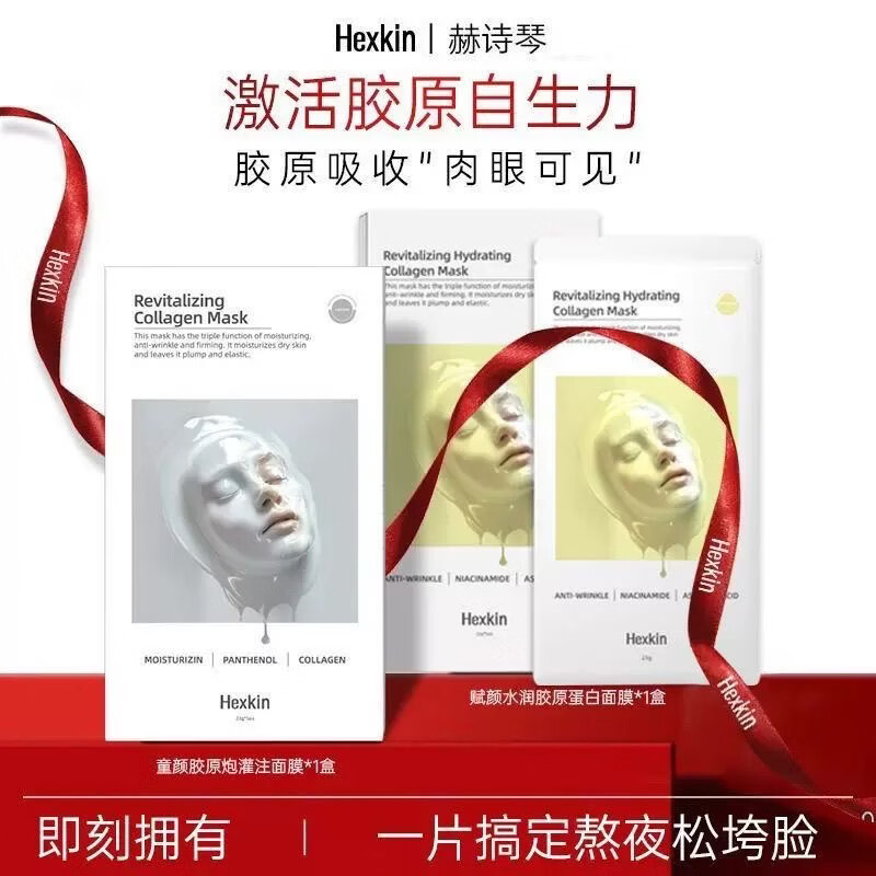 赫诗琴hexkin胶原蛋白胶原炮灌注面膜VC焕白款紧致抗皱补水保湿黄膜韦雪 黄膜两盒/10片