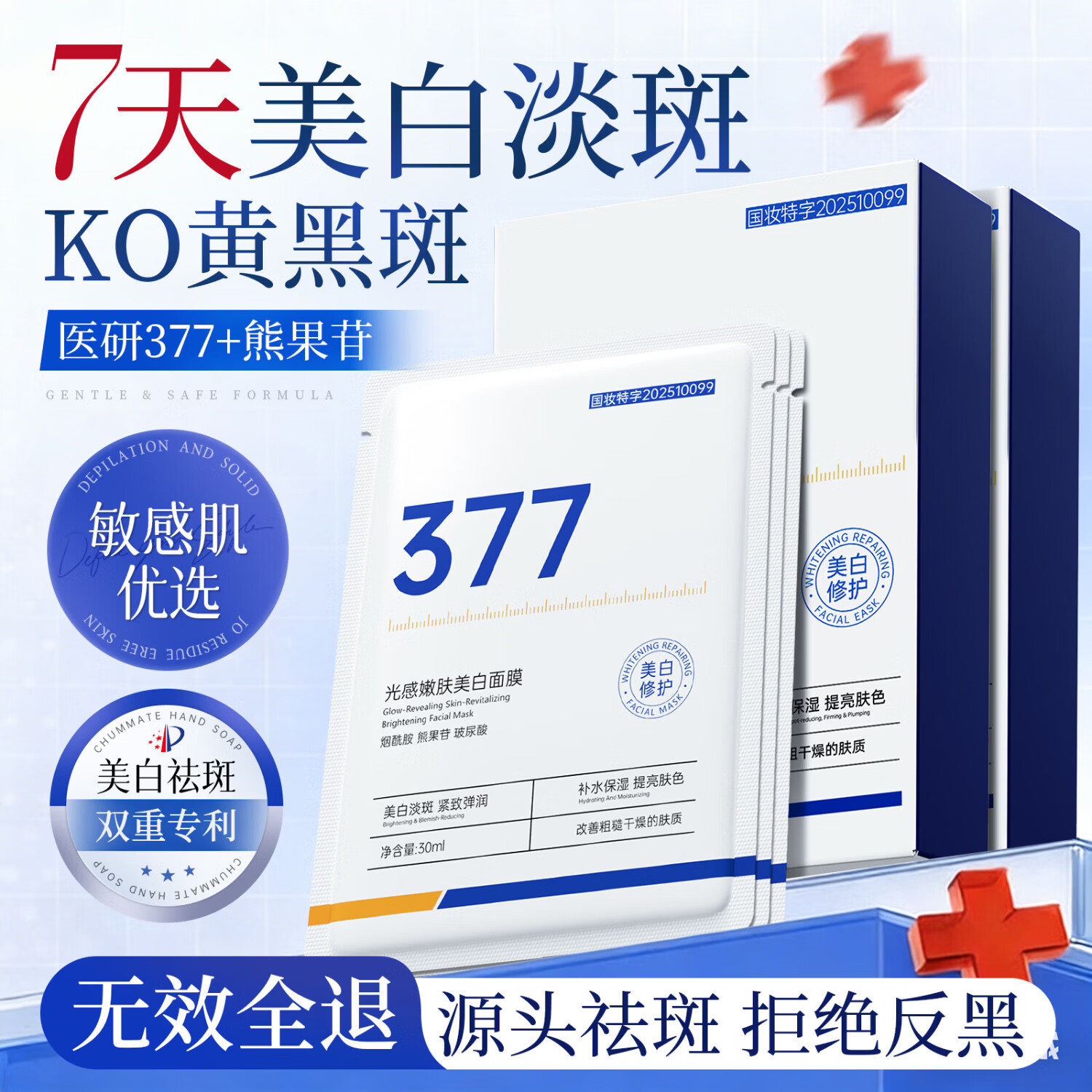 初蔓面膜抗皱紧致抗衰老补水美白淡斑胶原蛋白保湿男女士去黄淡化细纹 【美白淡斑】377光感嫩肤美白面膜30ML/盒10片