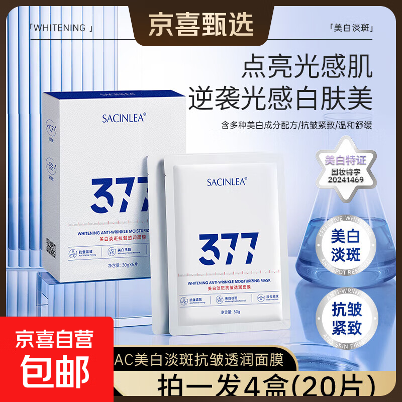 仙蒂奈儿377氨甲环酸面膜抗皱紧致抗衰老补水美白淡斑胶原蛋白保湿男女士 【拍2发3】377氨甲环酸美白祛斑抗皱面膜25ml*5片