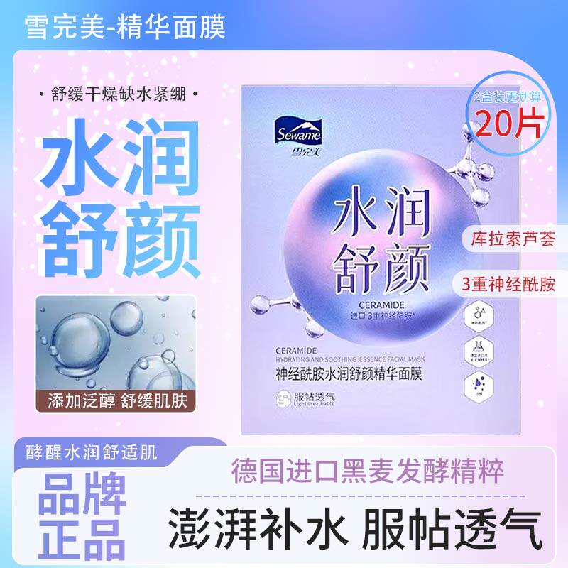 正品雪完美神经酰胺水润舒颜精华面膜补水保湿舒缓干燥服帖透气女
