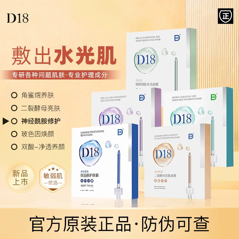 d18面膜神经酰胺面膜5盒装贴片女补水保湿舒缓修护紧致毛孔玻