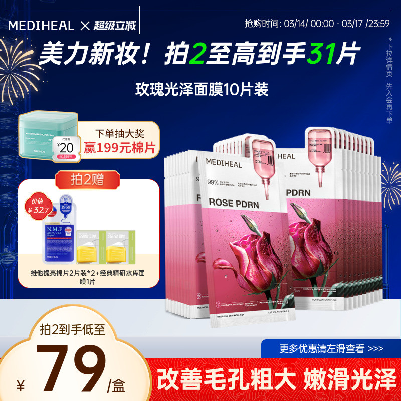 【银赫同款】美迪惠尔玫瑰光泽面膜补水精华面膜改善毛孔护理10片