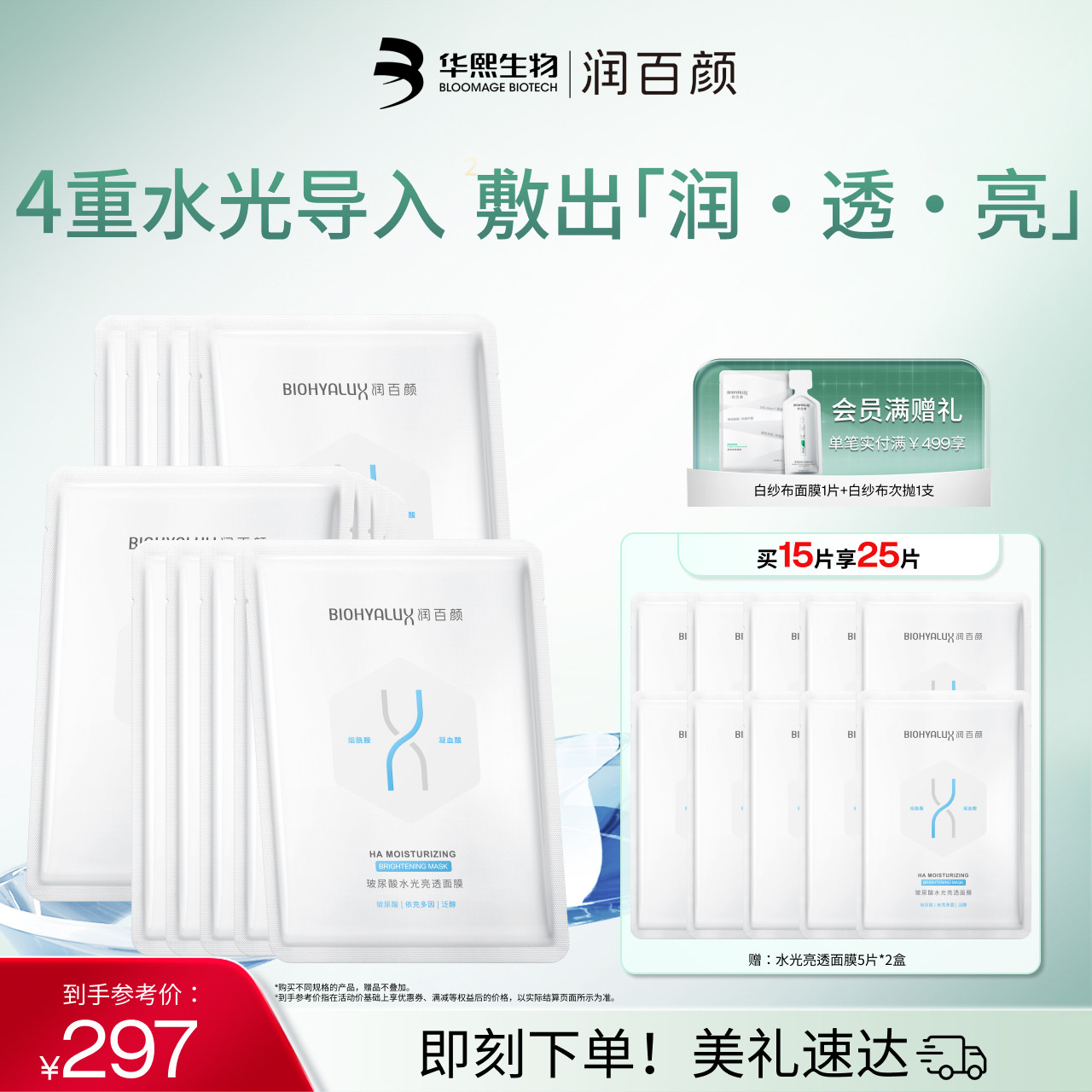 润百颜水光亮透肉肉面膜女补水保湿玻尿酸官方旗舰店正品华熙生物