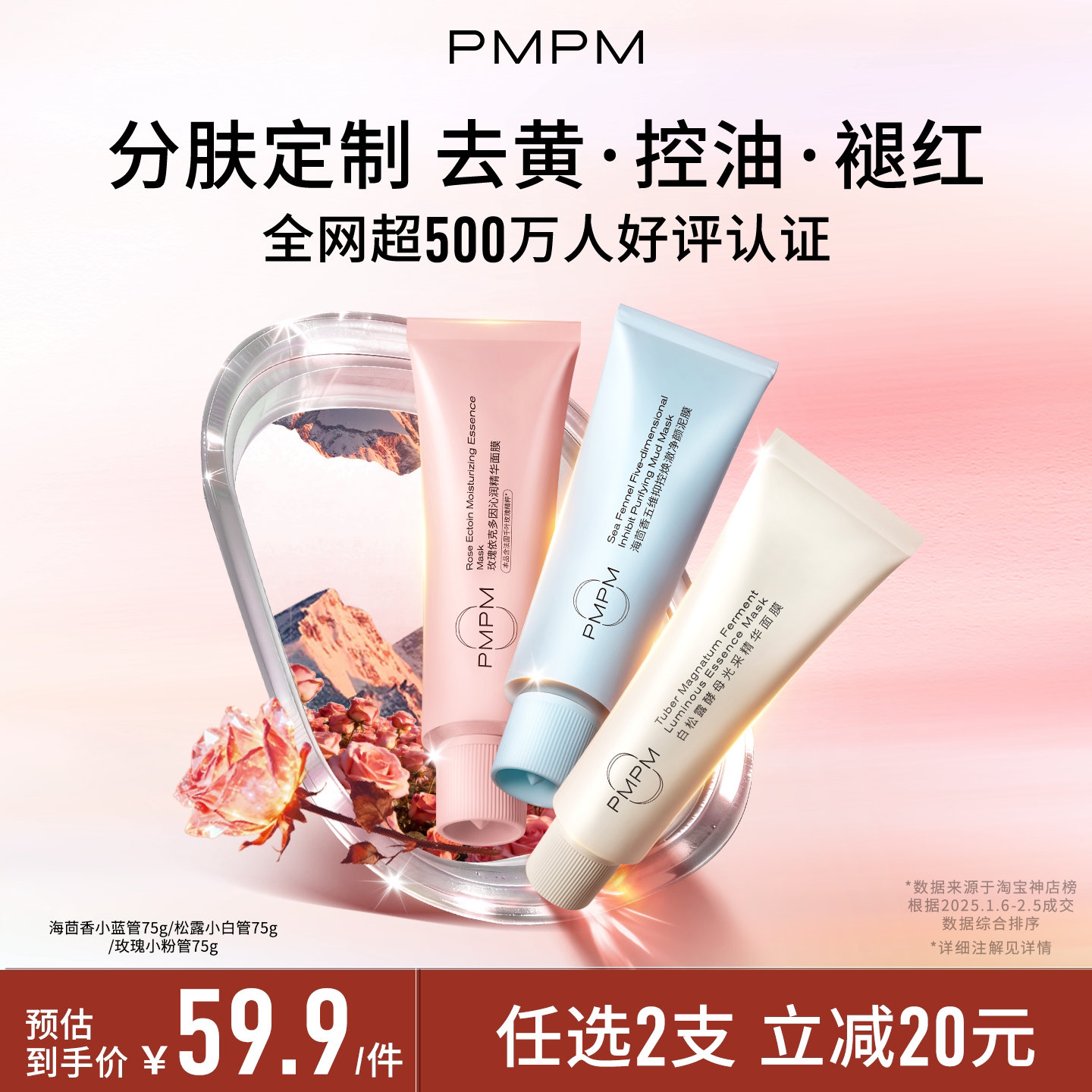 【品牌热卖】PMPM白松露玫瑰小白管涂抹面膜清洁泥膜控油去黄退红