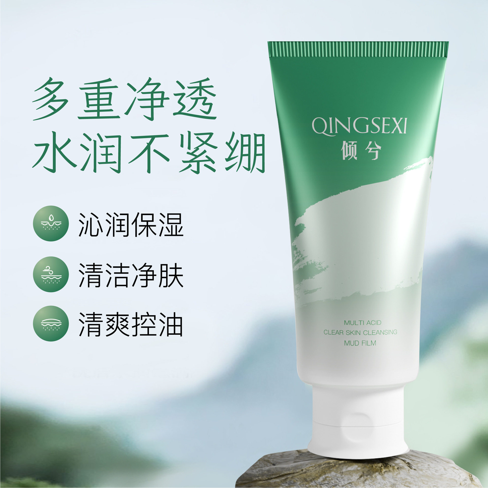 倾兮多酸清透净肤泥膜深层清洁淡黑头白头粉刺收毛孔控油涂抹面膜