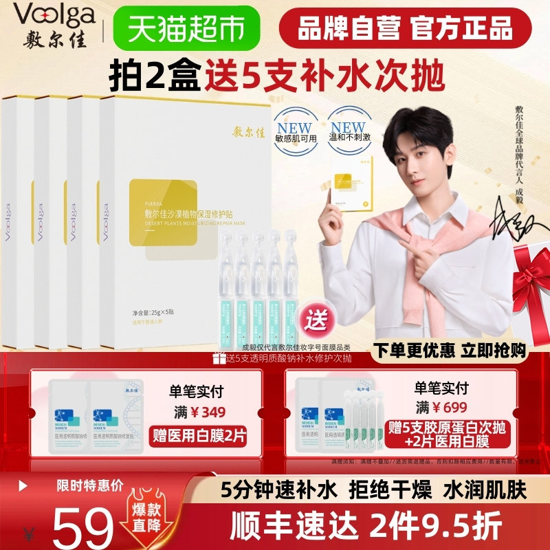 【品牌自营】敷尔佳沙漠植物保湿修护贴补水面膜保湿肌肤敏感肌