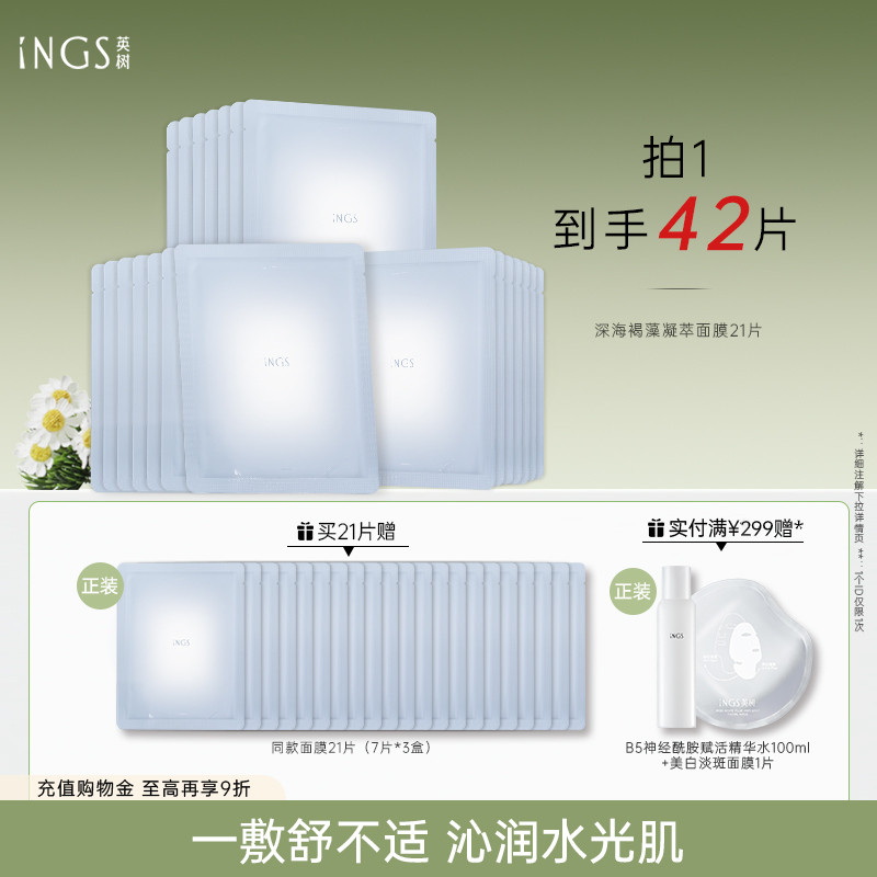 英树深海褐藻面膜套组玻尿酸海藻补水保湿贴片面膜官方旗舰店正品