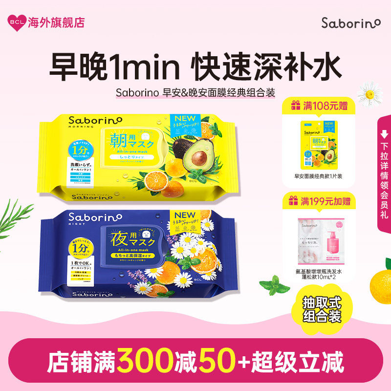BCL日本Saborino第2代经典保湿植物清爽早安晚安补水滋润面膜集合