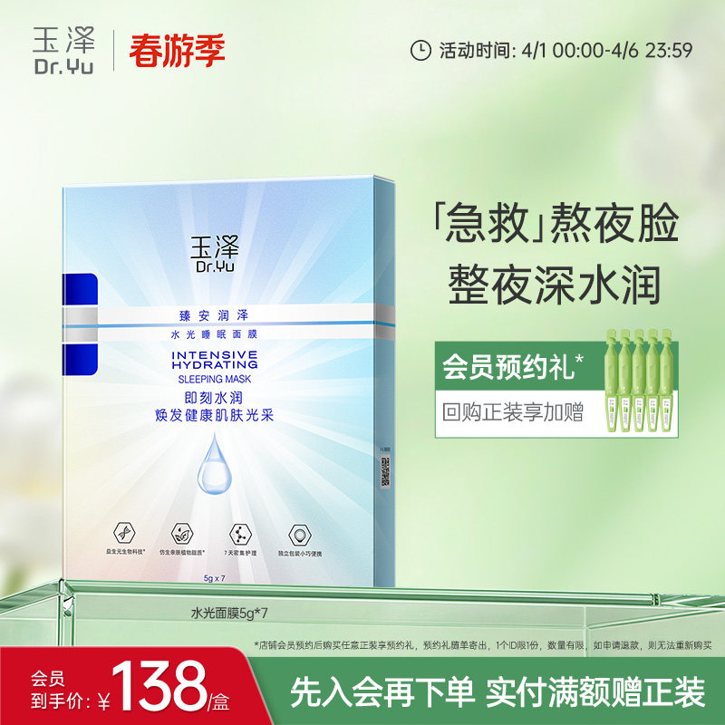 玉泽臻安润泽水光睡眠面膜舒缓敏感肌免洗保湿水润官方紧致面膜
