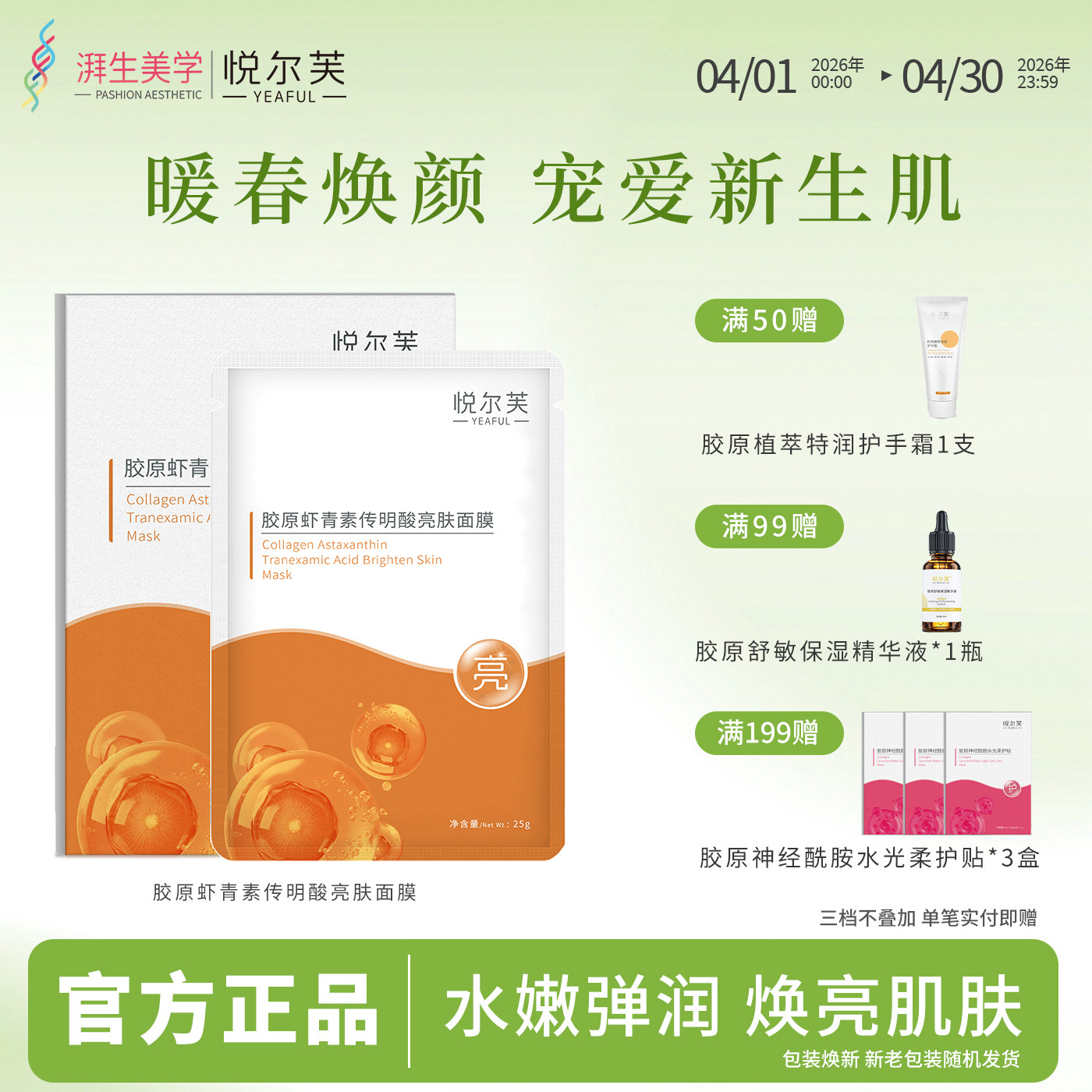 悦尔芙胶原虾青素传明酸亮肤面膜补水保湿亮肤贴水嫩弹润肤橙膜