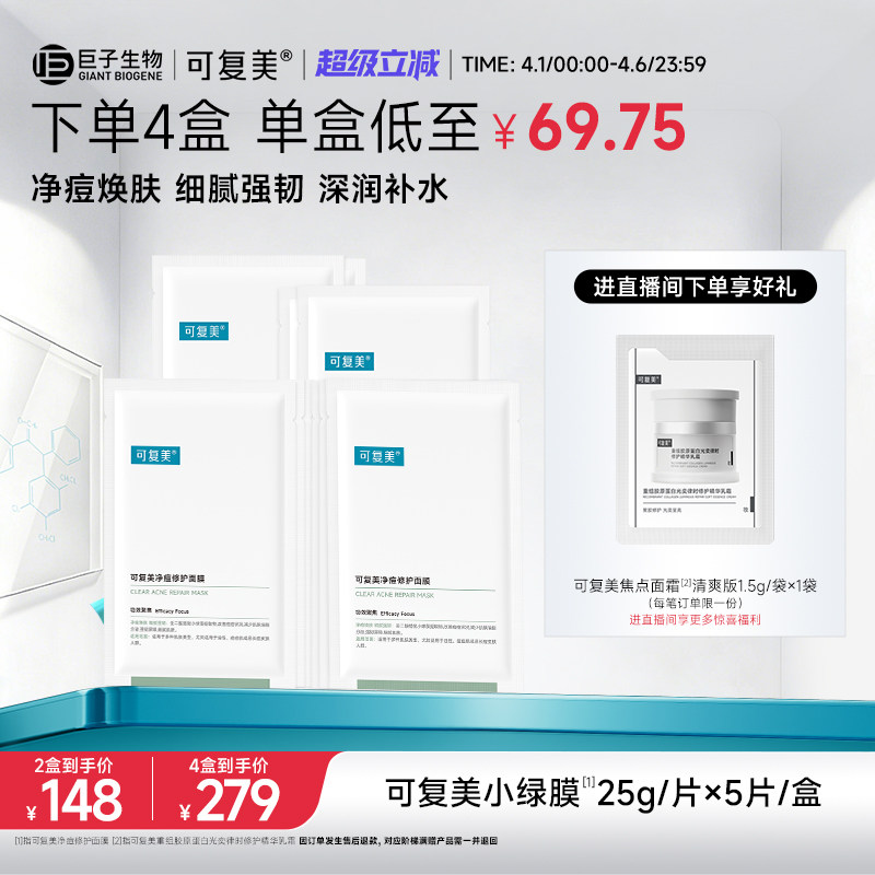 可复美净痘小绿膜修护皮肤屏障保湿控油润肤净痘强韧面膜5片/盒