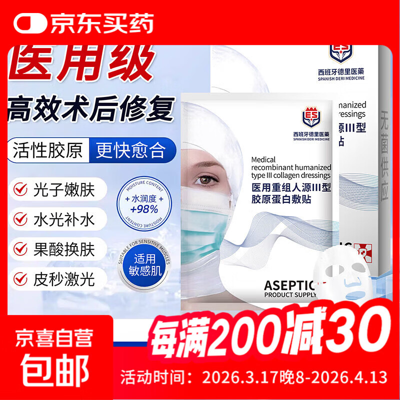 医用重组人源三型胶原蛋白敷料面膜医美水光术后敏感泛红补水保湿 【补水保湿】1盒5片