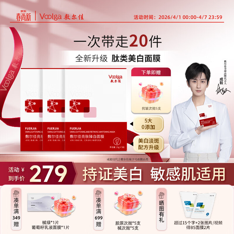敷尔佳亮肤臻白面膜3盒 补水美白去黄气暗沉淡斑提亮肤色保湿修护